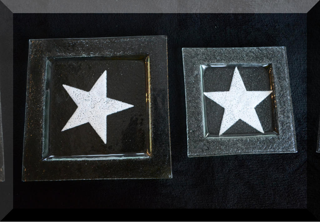 Mit farbigem Glaspulver verschiedener Körnung lassen sich alle Möglichen farbigen Muster erzeugen. Mit